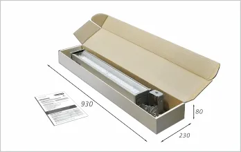 - Корпус из алюминиевого профиля обладает повышенным запасом прочности. Торцевые крышки из АБС-пластика обеспечивают полноценную герметичность. Защитное стекло из ударопрочного оптического поликарбонатного обеспечивает высокую светопроницаемость, надежность и устойчивость к механическому воздействию. Конструкция не подвержена влиянию окружающей среды и ультрафиолета.